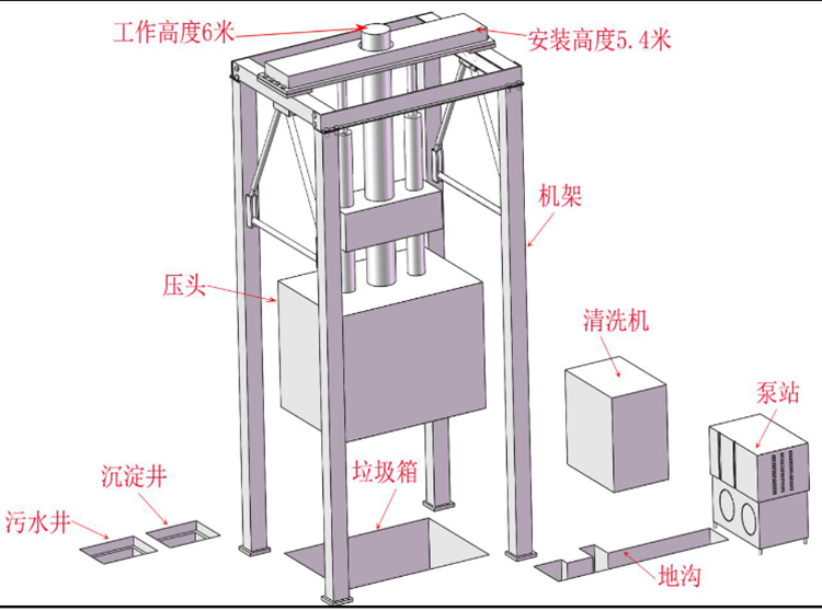 ◇設有垃圾儲存箱,適合集裝箱式散裝垃圾運輸車卸料,減少運輸費用。