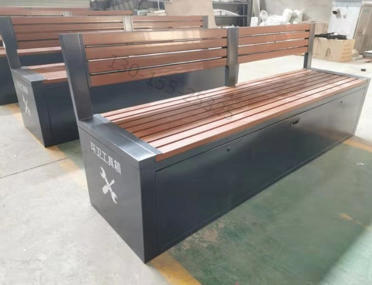 環(huán)衛(wèi)工具箱:也叫保潔員工具箱,環(huán)衛(wèi)工具椅,保潔員休息座椅,市政保潔箱等。工具箱常用尺寸為:長2400*寬500*高550mm,也可以做成2米,2.4米,2.7米等,寬度和高度也可以定做,滿足不同客戶、不同場所的使用要求。